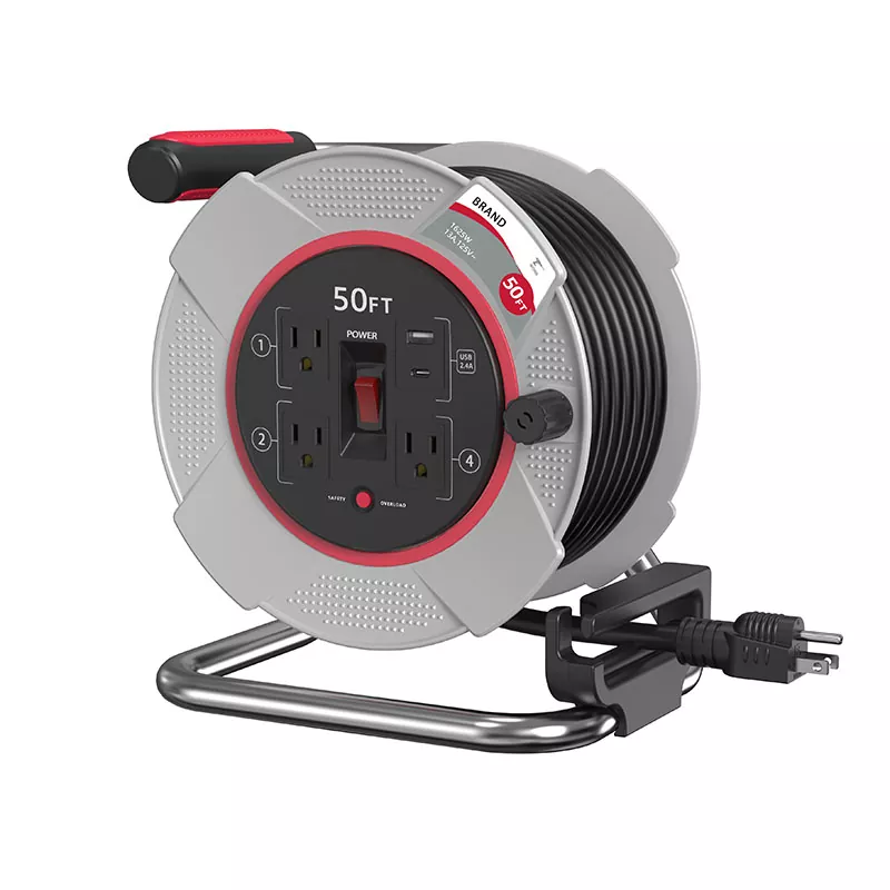 ओव्हरलोड प्रोटेक्शन पॅरामीटर (स्पेसिफिकेशन) सह निंगबो कैफेंग 3 आउटलेट्स Usb2.4a प्लॅस्टिक कॉर्ड रील 50ft